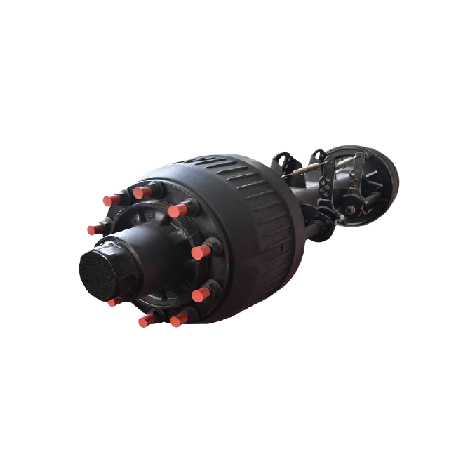 Tromle-type design: Disse aksler har en tromlebremsekonfiguration, hvor bremsesystemet er placeret i tromlen, der er fastgjort til akslen. Tromlebremser tilbyder effektiv bremseydelse og bruges ofte i tunge applikationer på grund af deres evne til at håndtere høje belastninger og sprede varme effektivt.