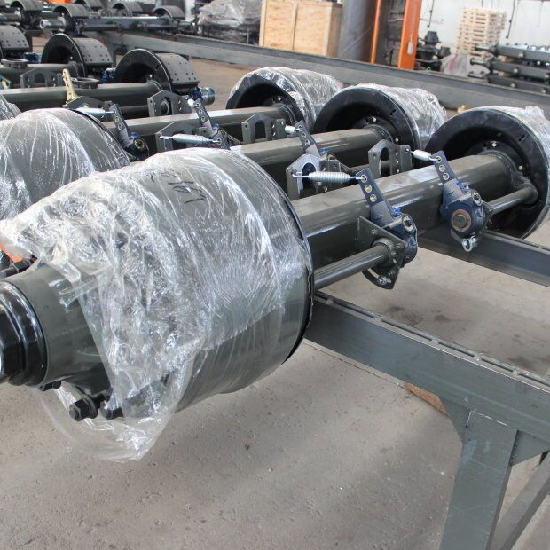 Bremsesystem: Trommetype-akslerne er udstyret med tromlebremser, der giver pålidelig stopkraft og varmeafledning. Bremsesystemet kan omfatte yderligere komponenter såsom bremsesko, bremsekamre og automatiske slappe justeringer til effektiv og sikker bremseydelse.