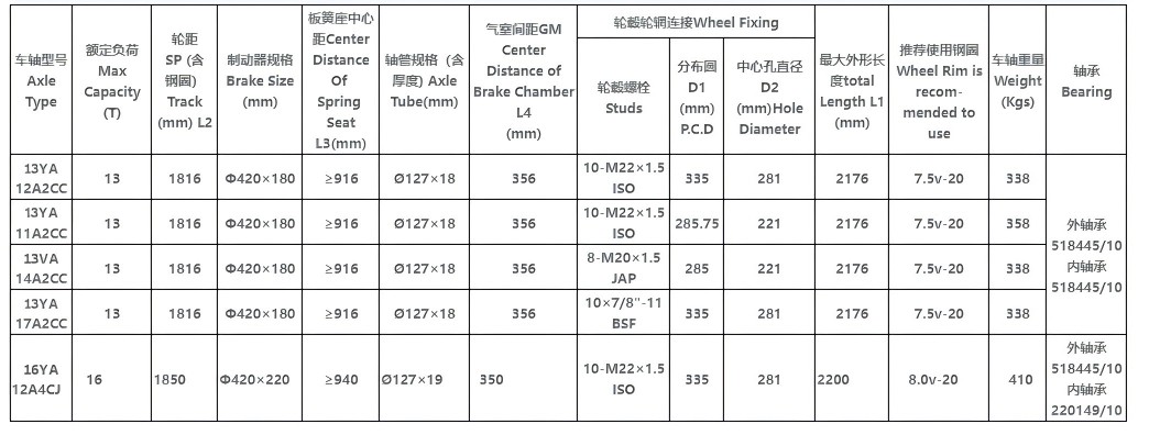 Dette er en standard 13t amerikansk aksel. Gennem optimeret design opnår det letvægt uden at ofre styrke, hvilket reducerer sin egen vægt. En standard 13T -aksel vejer kun 330 kg. Det er stærkt og holdbart, hvilket forbedrer de samlede mekaniske egenskaber ved akslen og har fremragende træthedsmodstand og sejhed.
